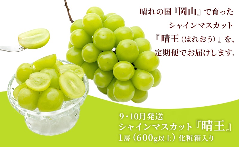 ぶどう 2026年 先行予約 晴れの国 岡山の シャイン マスカット 晴王 定期便 2回(各1房600g以上) 葡萄 岡山県産 国産 フルーツ 果物 ギフト