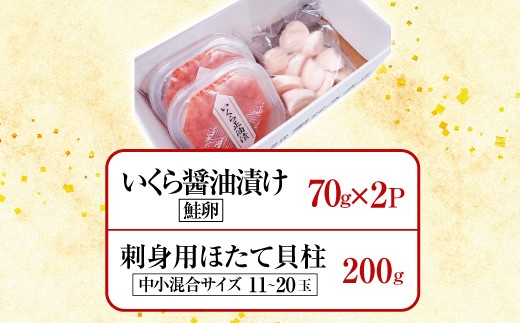 A-28212 根室海鮮市場<直送>刺身用ほたて貝柱200g・いくら醤油漬け(鮭卵)70g×2P