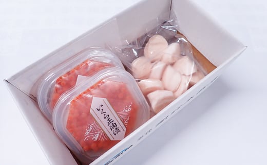 - A-28212 根室海鮮市場<直送>刺身用ほたて貝柱200g・いくら醤油漬け(鮭卵)70g×2P