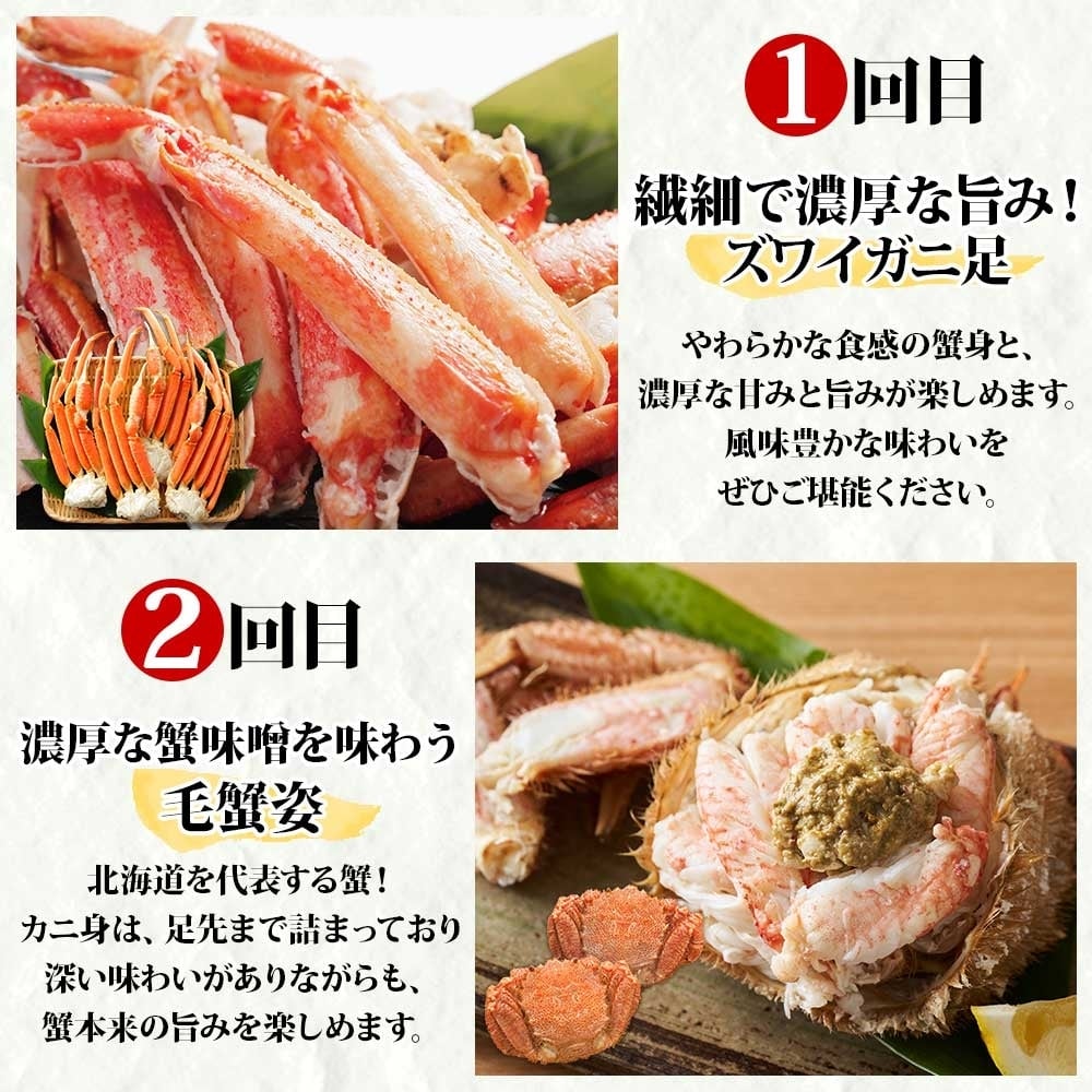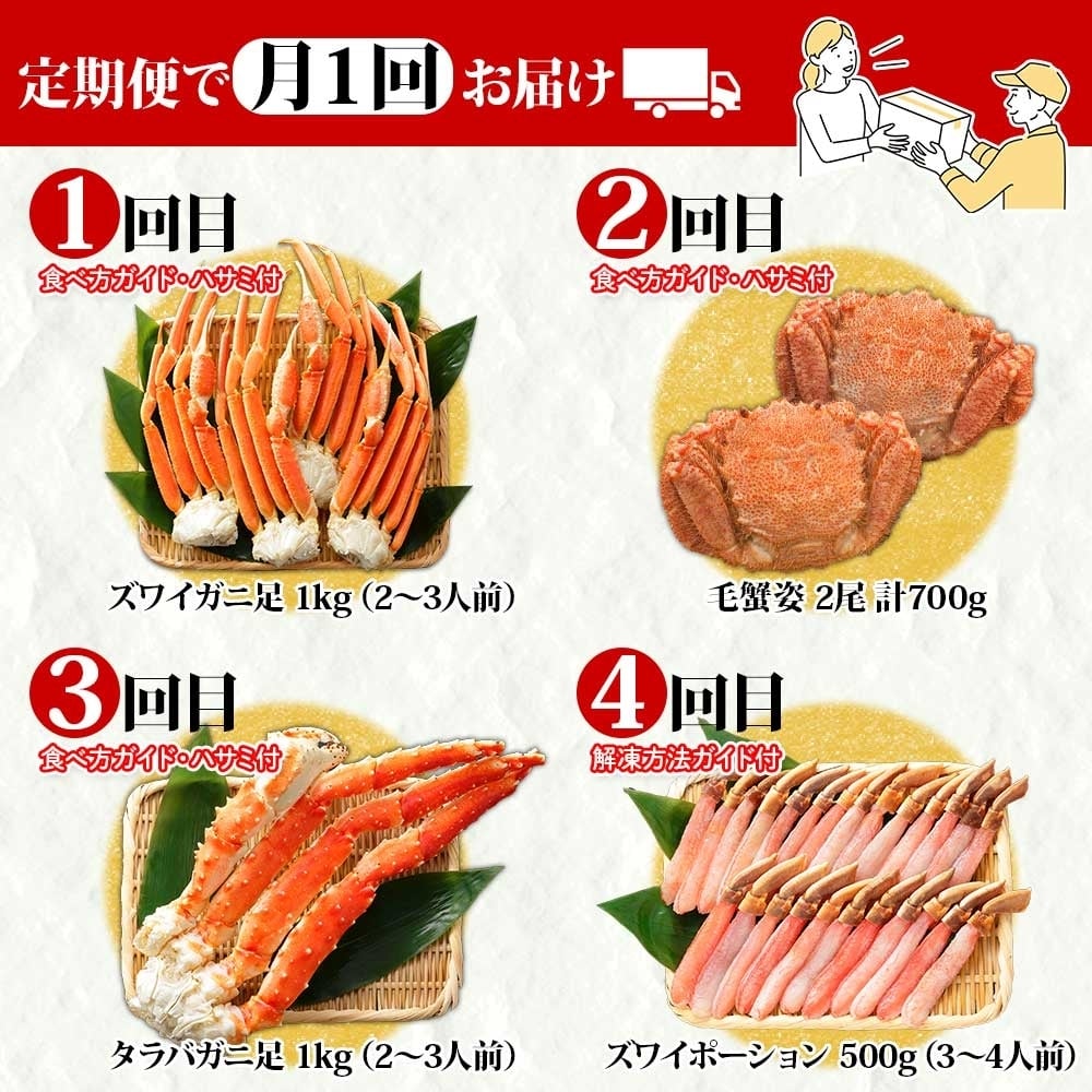 - ■定期便■ 1584.蟹づくし 頒布会 全4回 ズワイガニ足 1kg 毛蟹 2尾 700g タラバガニ足 1kg ズワイ ポーション 500g むき身 かに 蟹 カニ ズワイガニ ずわいがに たらばがに 送料無料 北海道 弟子屈町