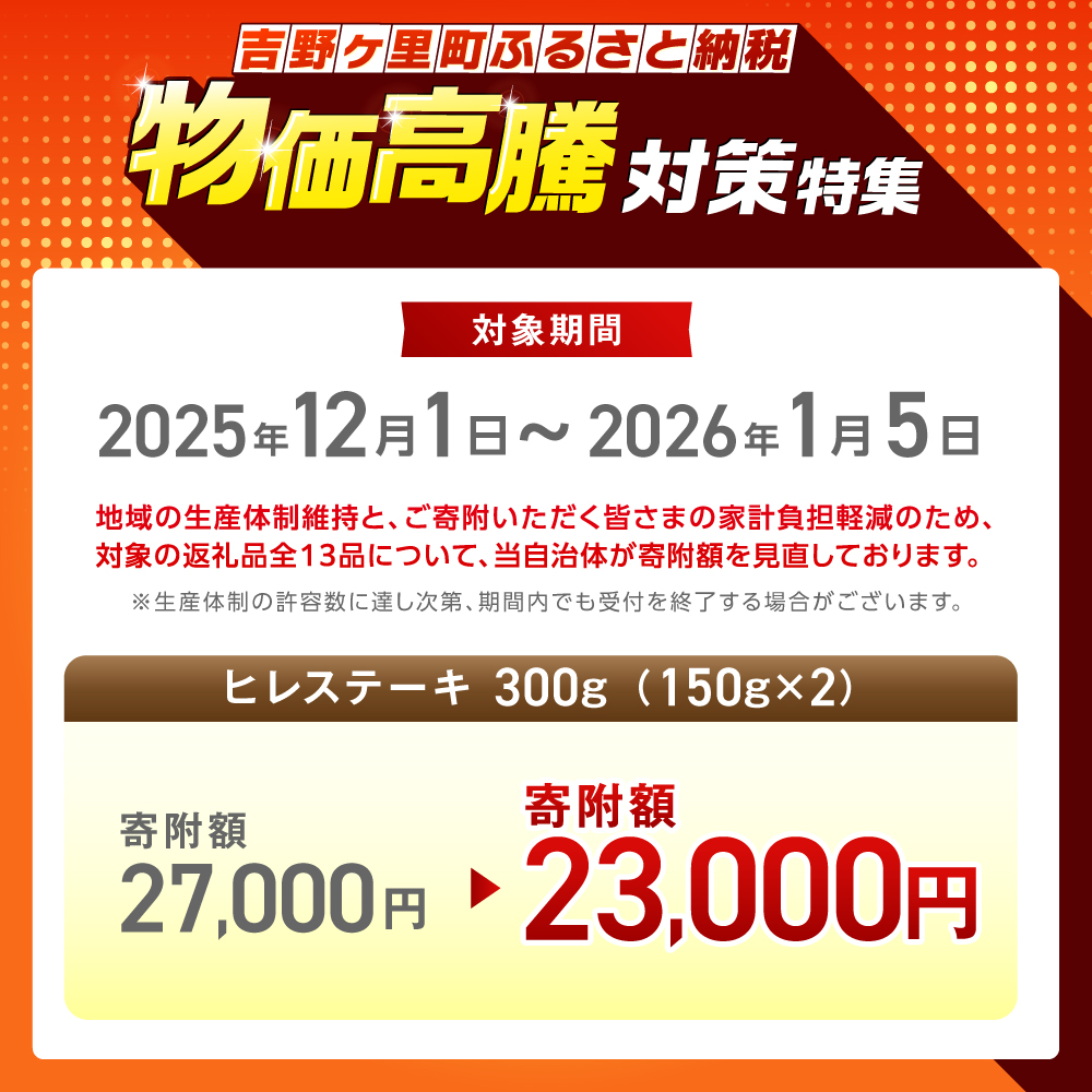 - 【2026年1月発送】この上ない美味しさ!佐賀牛 A4 A5等級 ヒレステーキ 300g (150g×2)2人前 吉野ヶ里町/NICK’S MEAT [FCY005-1]
