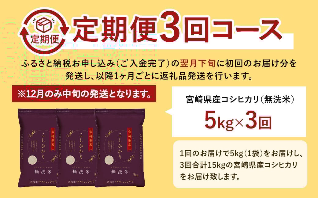 【3か月定期便】<令和7年産 宮崎県産コシヒカリ (無洗米) 5kg チャック付き米袋 3か月定期便>お申込みの翌月下旬に第1回目を発送 こしひかり コシヒカリ お米 米 コメ 国産 定期便