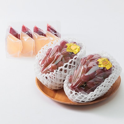 - 【2026年度発送分】朝採れ新鮮マスカットビオレ2房&ピオーネと白桃果肉ごろっとジュレセット【配送不可地域:離島・北海道・沖縄】【1435800】