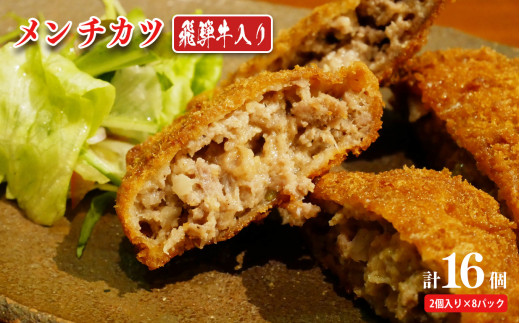 - 飛騨牛入り メンチカツ 2個x8P 計16個 | 飛騨牛 黒毛和牛 牛肉 牛 お惣菜 惣菜 おかず お弁当 冷凍 ストック 生活応援 贈答 岐阜県 北方町