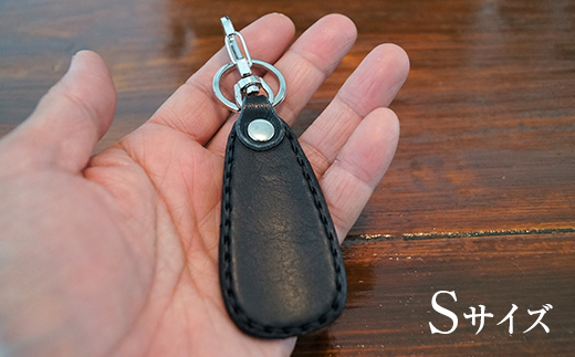 本革製携帯靴べら(S)<ブラック> 牛革 本革 小型 靴べら キーホルダー 国産牛革 革製品 贈り物 ギフト 国産 ブラック 黒 F6L-180