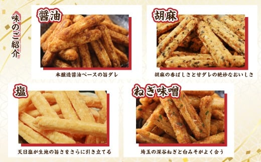 - 揚げせんべい 薪あげセット 4種類 各1袋 | せんべい 煎餅 米油使用 米油 こめ油 薪あげ 薪 たきぎ スティック 塩 醤油 胡麻 ねぎ味噌 おいしい 美味しい 小袋 個包装 手作り煎餅 お茶うけ おつまみ おやつ セット 埼玉県 久喜市 高砂製菓