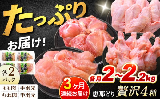 【3回定期便】 【冷凍】 恵那どり 贅沢4種 詰め合わせ (もも肉2枚 むね肉2枚 手羽先10本 手羽元10本) 小分け セット (約2~2.2kg×3回) 鳥肉 鶏肉 とりにく 鶏モモ 鶏ムネ 冷凍 手羽先 手羽元 手羽 小分け 唐揚げ 真空包装 詰め合わせ 鶏肉食べ比べ 詰合せ バーベキュー BBQ アウトドア キャンプ 多治見市/トーノーデリカ [TEZ014]