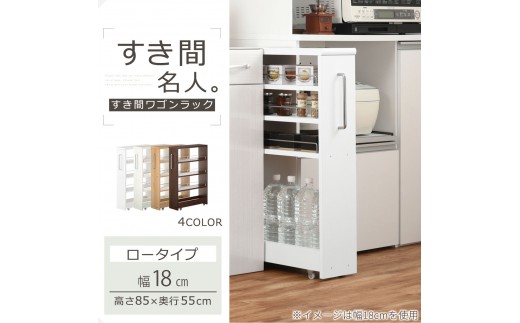 - 【完成品+設置付き】すき間ワゴンラック ロータイプ〔幅18cm・シンプルタイプ〕(オーク)隙間収納 キッチンラック スリム スリムラック キッチン キッチンワゴン 収納 すき間収納 ランドリー ラック KKONRA945188-0-OAK