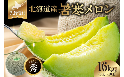 【令和8年産先行予約】北海道産 暑寒メロン 8~10玉 (8kg以上×2箱) 《2026年7月より発送予定》メロン 先行予約 北海道 青肉 糖度 14度以上 2026年 7月 大容量 ブランドメロン