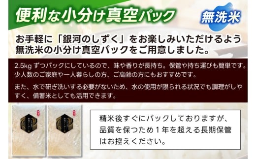 - 岩手県紫波町産 令和7年産 無洗米「銀河のしずく」 5kg (2.5kg×2袋) 小分け真空パック (EN005)