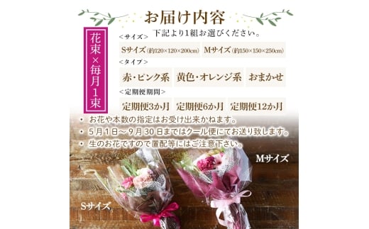 花束(Sサイズ・赤ピンク系・6ヶ月・毎月1束) 【m56-05-SA6】【Porte-Bonheur】