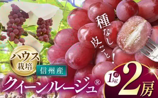 【先行受付:2026年発送】信州産 クイーンルージュ®︎(ハウス栽培)2房(約1kg)|ふるさと納税 松本市 ぶどう 葡萄 クイーンルージュ® ハウス栽培 果物 フルーツ 種無し 新鮮 信州産 先行予約