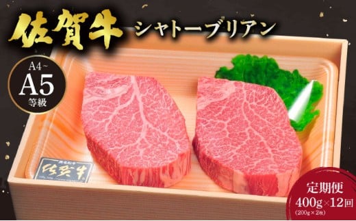 <定期便12回>佐賀牛シャトーブリアンステーキ400g(200g×2枚) / 佐賀 大町町 肉 お肉 牛肉 フィレ ヒレ ステーキ 贈答 ブランド牛 A5 国産 霜降り ギフト グルメ 国産牛 特産品 お祝い 贈り物 ステーキ肉 冷凍 送料無料