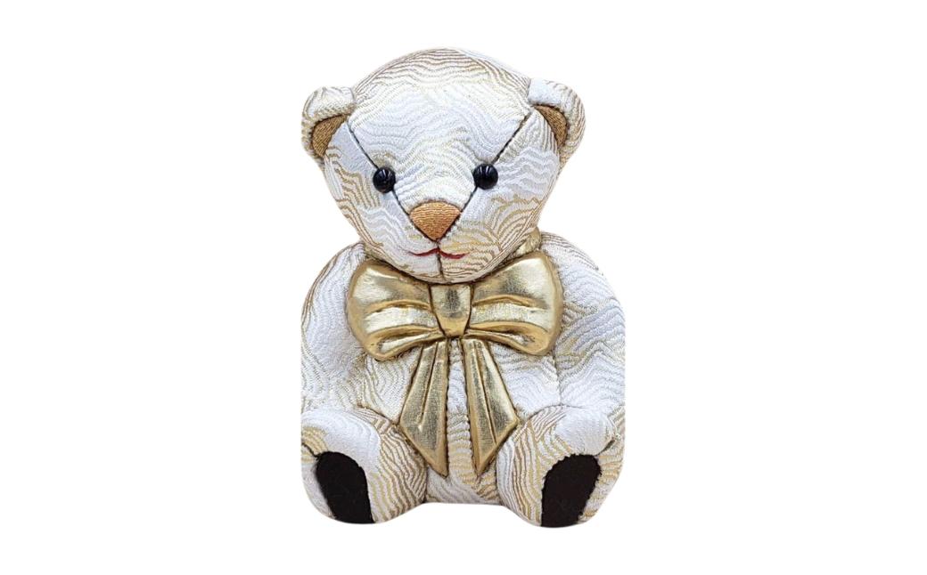 - 木目込み人形 朱鷺(とき)メキベア「長寿祝バージョン」 金茶系 名入れ 刺刺繍 お祝い プレゼント ときめきベア 【107S010】