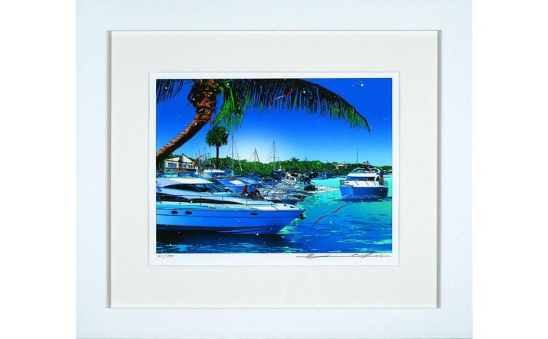 - 版画 鈴木英人版画 「トロピカルな休日」 フレーム付き 絵画 アート 絵 芸術 インテリア サイン入り 三浦半島 リゾート 逗子市 神奈川県 [№5875-0806]