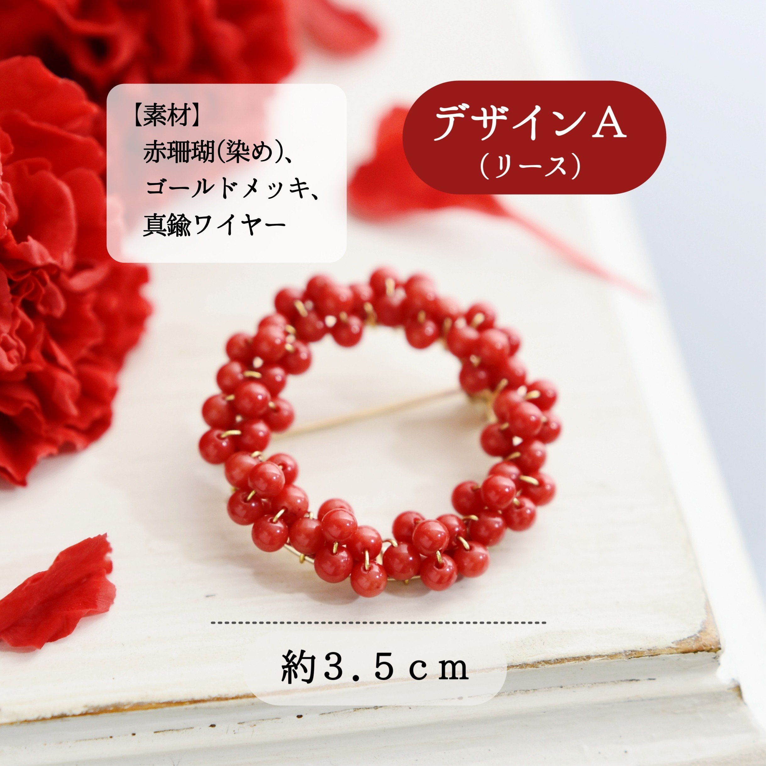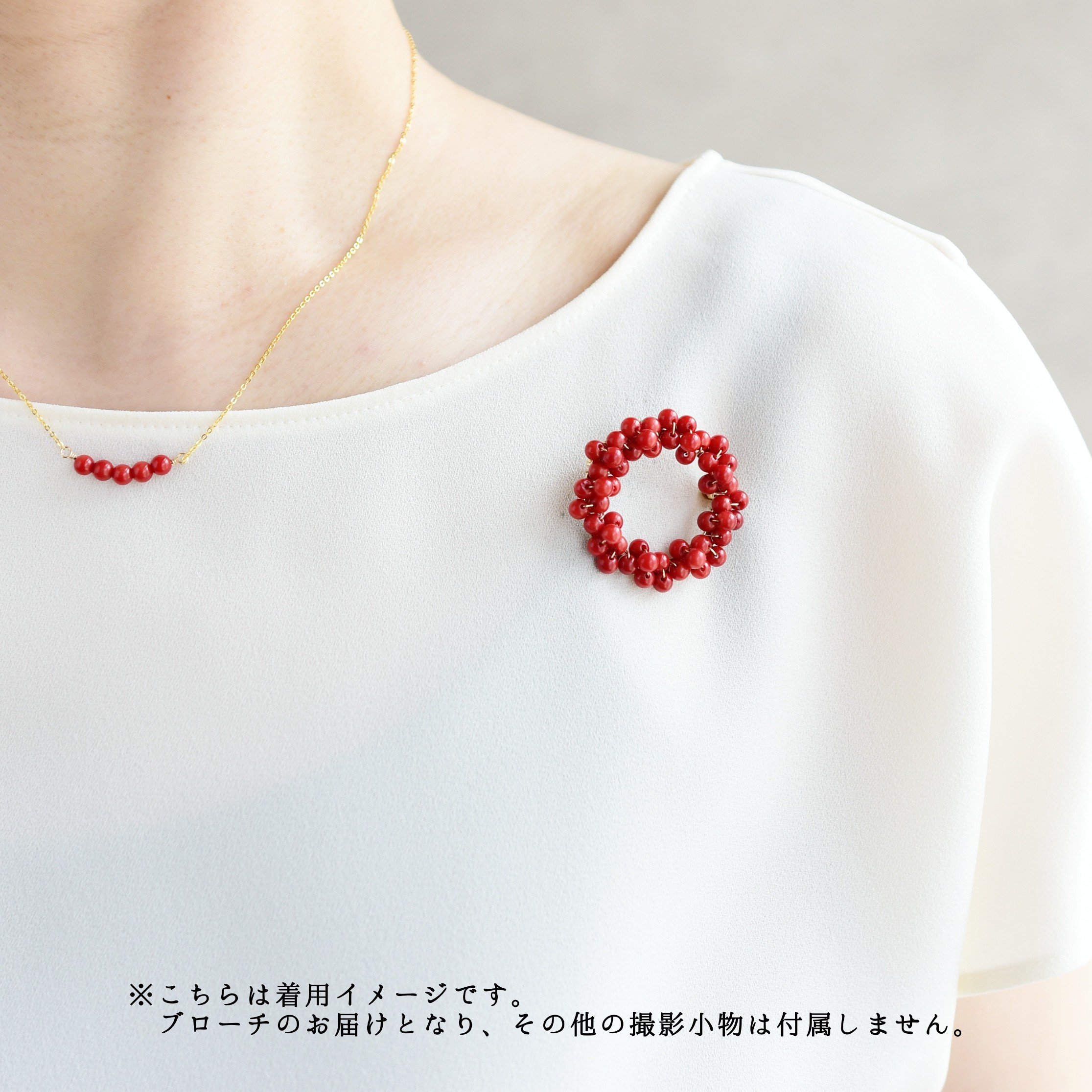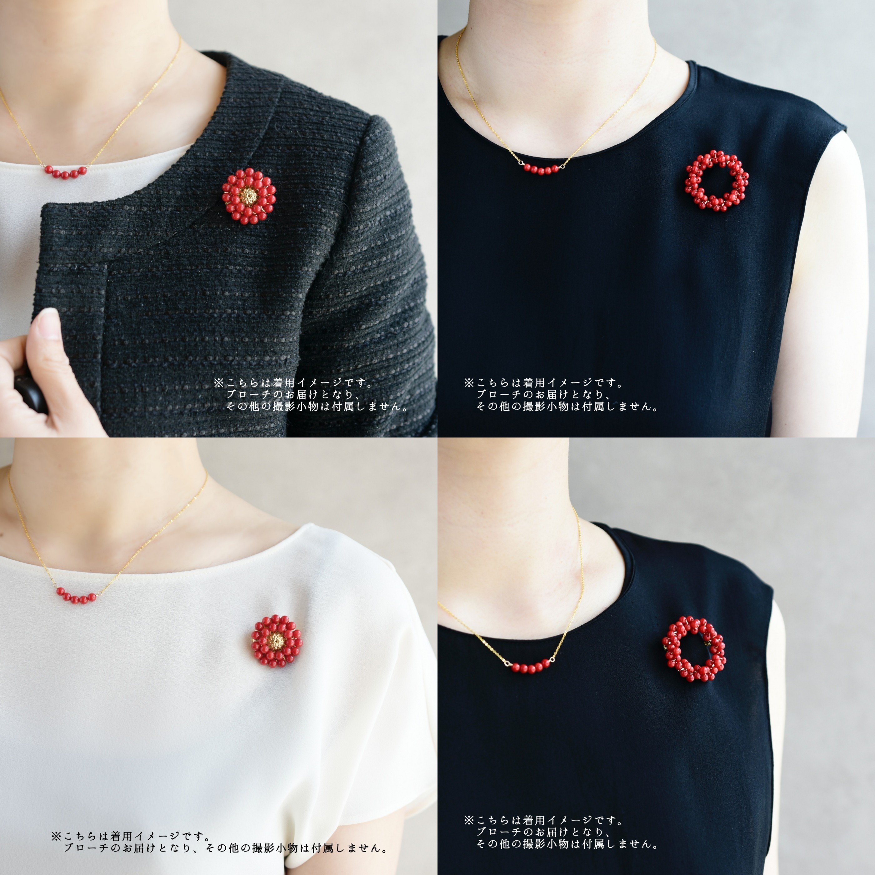 - [20-66] 手作り ブローチ 赤珊瑚(赤い木の実/アンティークレトロなお花)