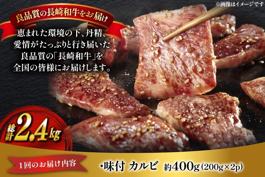 - 和牛 長崎和牛 牛肉 カルビ 味付き 200g 2p 6回 定期便 総計約2.4kg [萩原食肉産業 長崎県 平戸市 hr42bgy410198] 国産 牛肉 冷蔵 肉 平戸 希少 BBQ ブランド牛