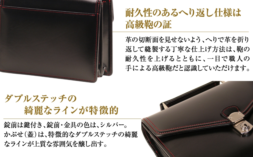 - 高級ヘリ返し仕様の牛本革メンズセカンドバッグ【ジェントルミニ (黒革・赤ステッチ)】