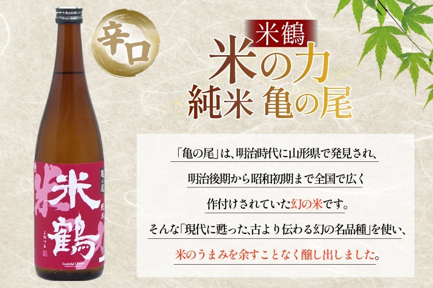 日本酒 辛口 米の力 純米 亀の尾720ml 2本 セット [米鶴酒造 山形県 高畠町 tk06ays710018] 酒 お酒 米 720 晩酌 淡麗