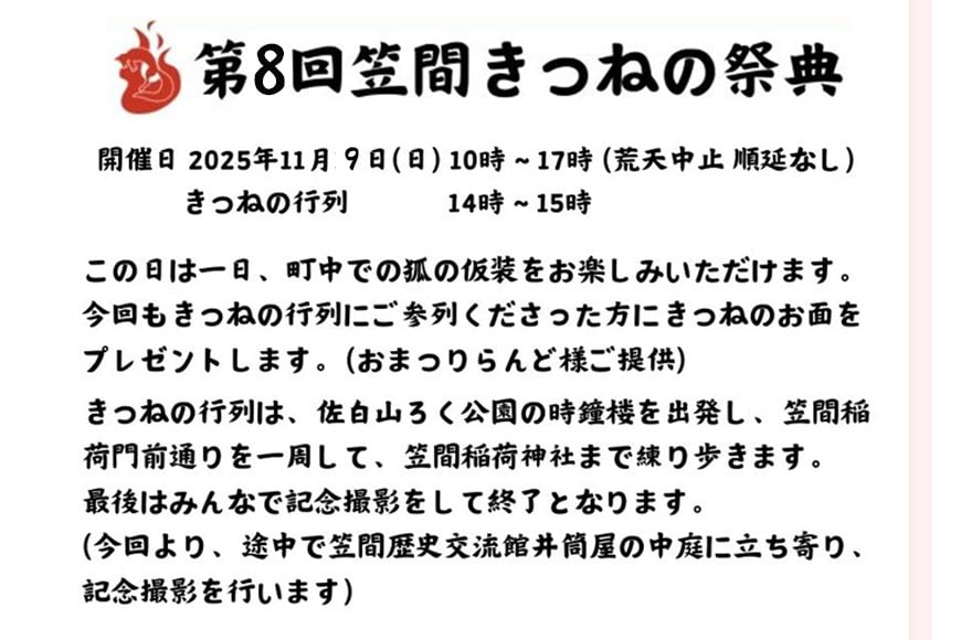 - 第8回笠間きつねの祭典 11月9日開催 きつねの行列 通常ご参列権