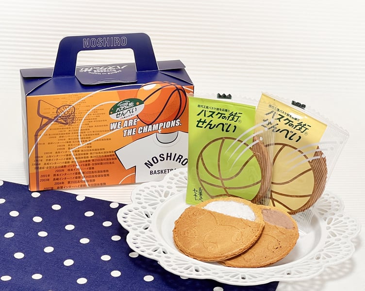 - お菓子のセキト バスケの街せんべい 8枚入り×1箱【能代科学技術高校承認BOX入り】