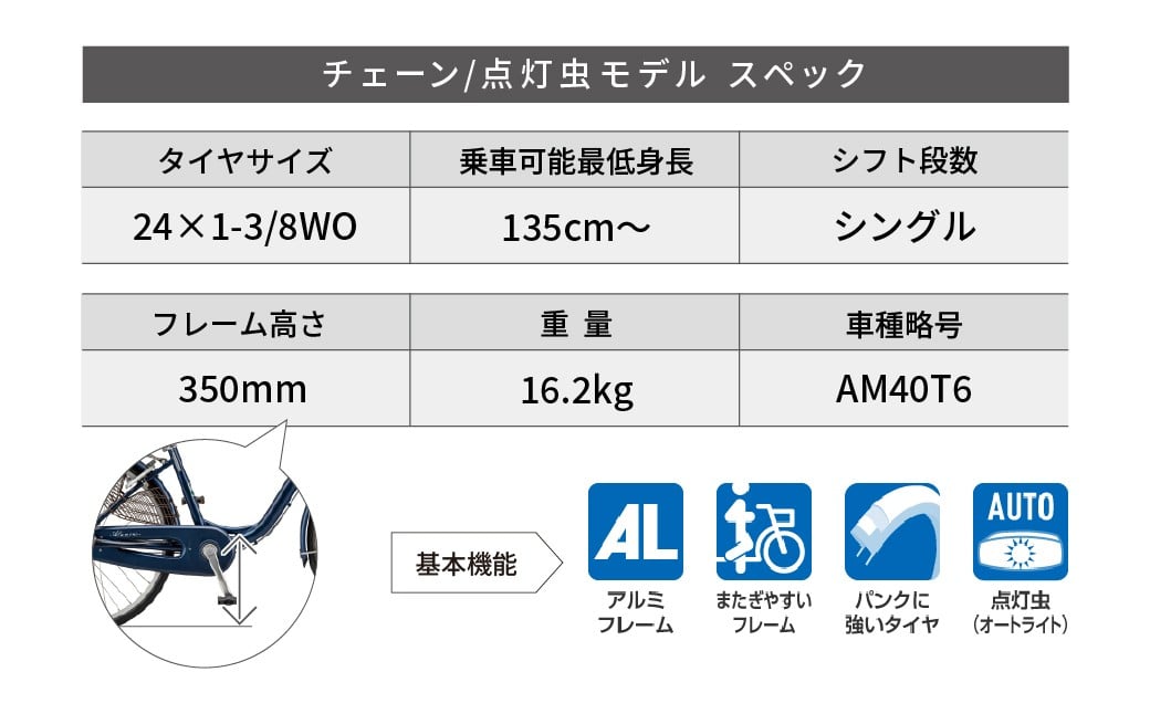 【自転車】 アルミーユ ブリヂストン 【AM40T6】24インチ シングル オートライト モデル【EXモルベージュ/ツケ消しTXサファイヤブルー】 | 完成品 自転車 日常 買い物用 乗りやすい お買い物 チャリンコ 安全 おしゃれ ブリジストン ブリヂストンサイクル 埼玉県 上尾市