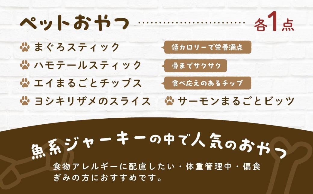 - &WAN Kitchenペットおやつセット(海の幸堪能セット)(サメスライス/鮭まるごとビッツ/まぐろスティック/ハモしっぽ/エイまるごとチップ) SMU019