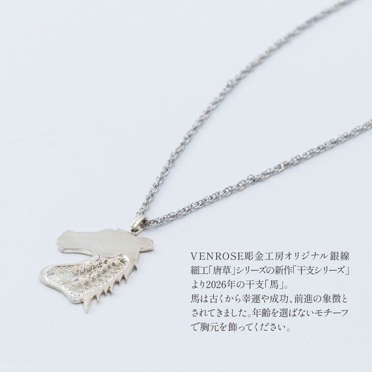 - 唐草ペンダント(馬) 〈 ネックレス アクセサリー ペンダント シルバー950 ジュエリー 銀線細工 唐草 工芸品 職人 おしゃれ フォーマル レディース ギフト プレゼント お祝い 記念日 母の日 誕生日 パーティ イベント チェーン付き 〉