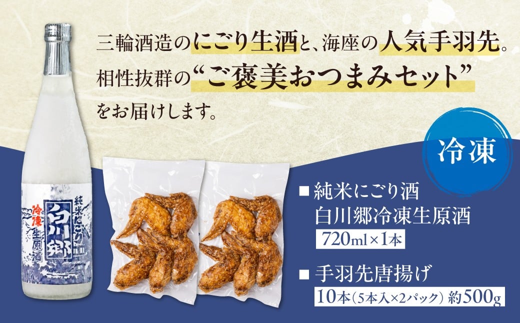 濃厚にごり「冷凍生原酒純米にごり白川郷」と海座名物「手羽先唐揚げ」10本入り