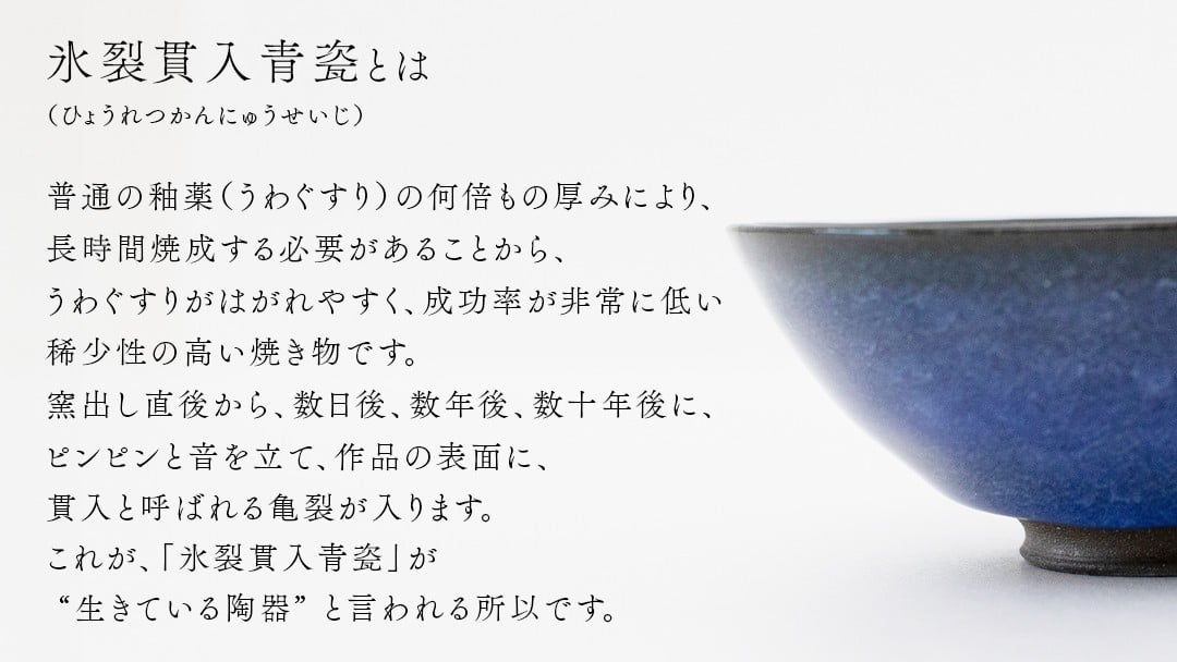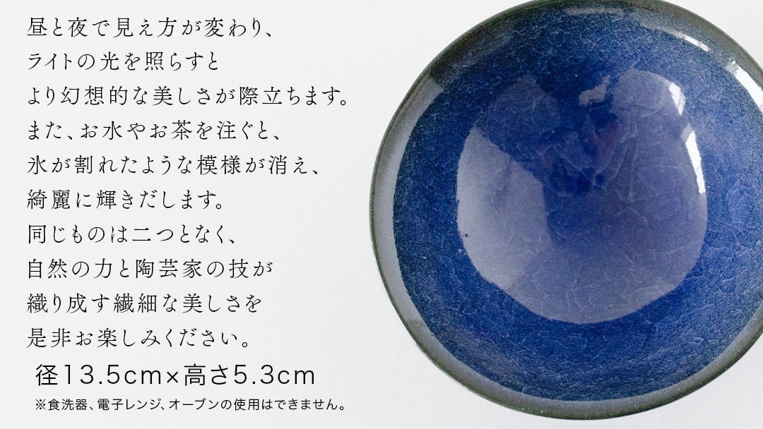 - 【氷裂貫入瑠璃青瓷】抹茶茶碗 (小野寺裕司 作) 径13.5cm×高さ5.3cm | 茶碗 湯飲み 夫婦湯飲み 陶器 陶芸 お茶 食器