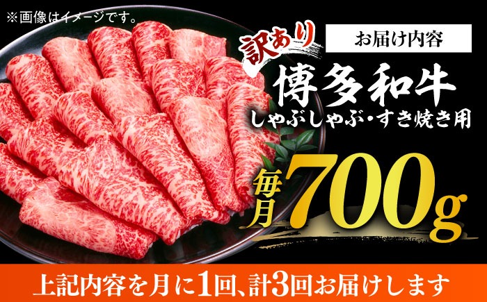 - 【3回定期便】【訳あり】博多和牛 牛肉 しゃぶしゃぶ すき焼き用 700g《築上町》【株式会社MEAT PLUS】[ABBP088]