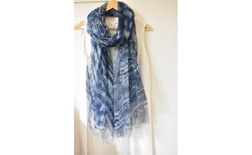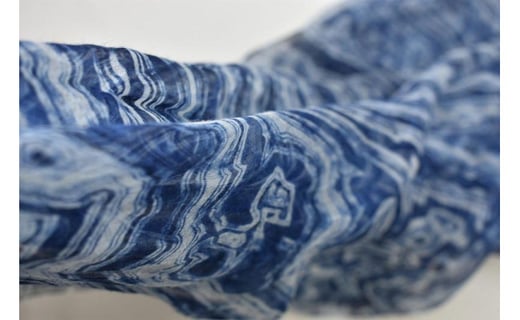 - リネンストール藍染め 板締め絞り(極細麻糸ラミー)(男女兼用)天然素材ストール専門店muto FAA4028