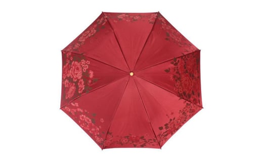 - 槙田商店【晴雨兼用折りたたみ傘】”絵おり” 大バラ:エンジ FAA5062