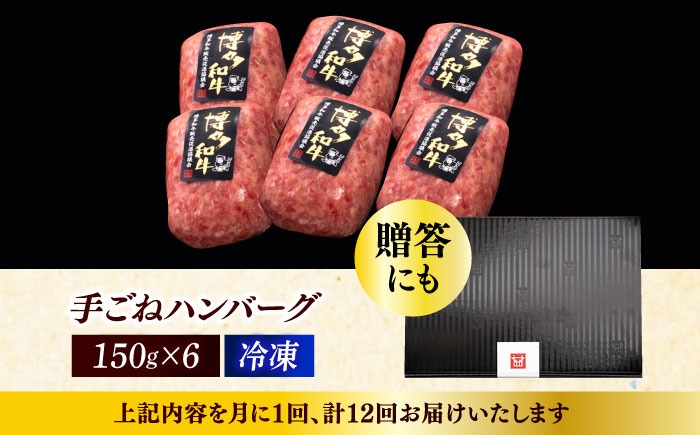 【全12回定期便】博多和牛100%!本格 手ごね ハンバーグ 6個《築上町》【久田精肉店】[ABCL122]