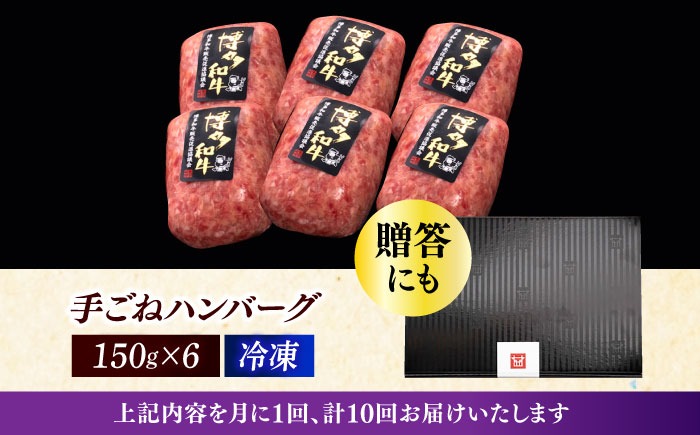- 【全10回定期便】博多和牛100%!本格 手ごね ハンバーグ 6個《築上町》【久田精肉店】[ABCL121]