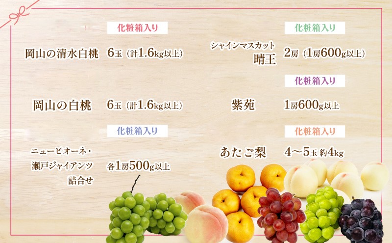- 桃 ぶどう 梨 定期便 2026年 先行予約 フルーツ王国 岡山を堪能 6回コース 夏・秋・冬物語 白桃 フルーツ 果物 岡山