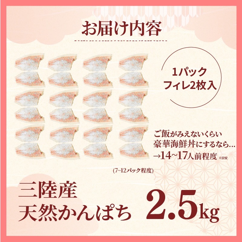 三陸産 カンパチ 刺身 2.5kg 新鮮 人気 高級 天然 三陸 魚 産地直送 かんぱち 勘八 しゃぶしゃぶ 鍋 照り焼き 刺し身 さしみ 生 冷凍 海鮮 魚介 国産 グルメ 急速冷凍 kanpati スキンレス フィレ ワンフローズン 岩手 大船渡 岩手県 大船渡市 [kouyou023]