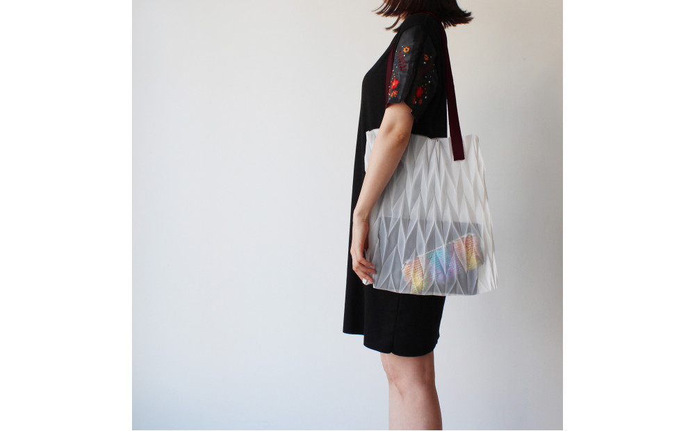香川産プリーツバッグ・ヘリンボーン・ラージ[ ブロンズ 1点]軽やかで上品な透け感のあるショルダーバッグ 372013_LJ011VC01