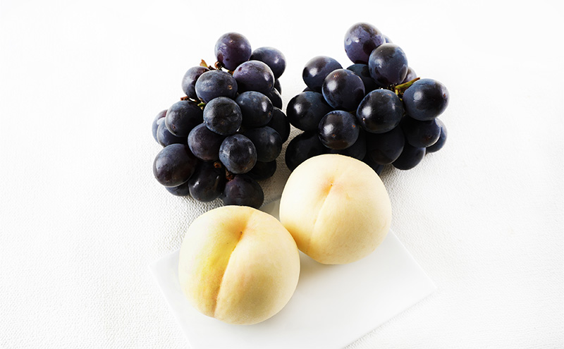 - 桃 ぶどう 2026年 先行予約 果物詰合せ 白桃 2玉(1玉200g以上) ニュー ピオーネ 2房(合計約940g)化粧箱入り 岡山県産 国産 フルーツ 果物 ギフト 贈り物 セット