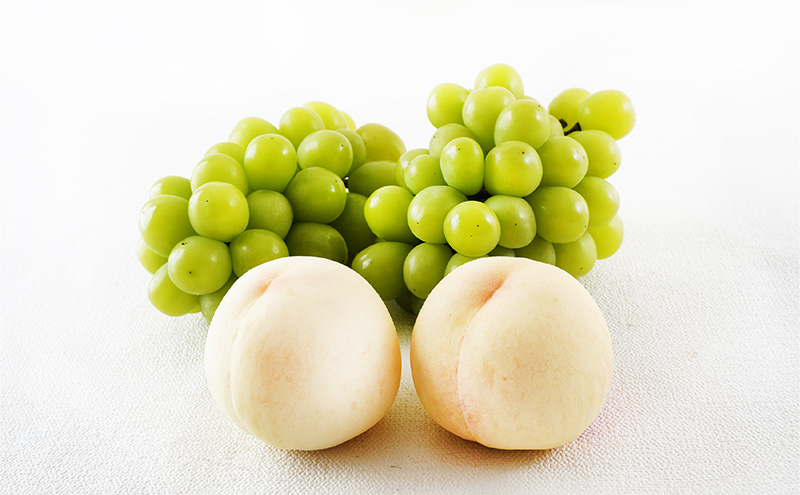 桃 ぶどう 2026年 先行予約 果物詰合せ 白桃 2玉 (1玉200g以上) シャイン マスカット 晴王 2房 (合計約940g) 化粧箱入り 岡山県産 国産 フルーツ 果物 ギフト