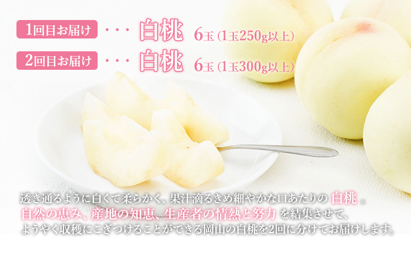- 桃 定期便 2026年 先行予約 晴れの国 岡山 の 白桃 ×2回 お届け 1回目 白桃 6玉(1玉250g以上)/2回目 白桃 6玉(1玉300g以上) 化粧箱入り もも モモ 岡山産 国産 フルーツ 果物 ギフト