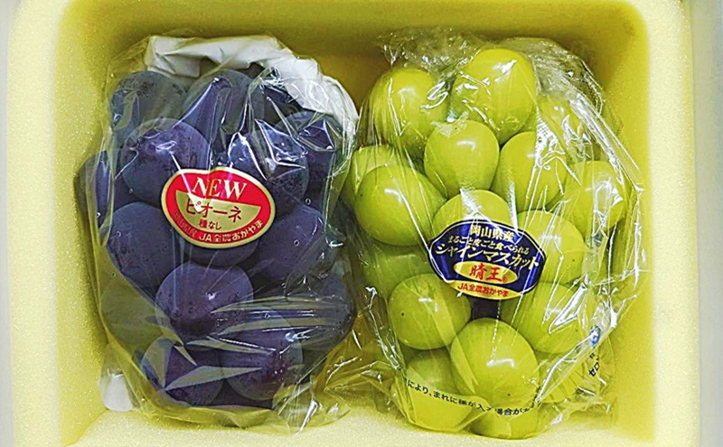 ぶどう 2026年 先行予約 詰合/ニューピオーネ 1房(480g以上)・シャインマスカット 晴王 1房(480g以上) 化粧箱入り ブドウ 葡萄 岡山県産 国産 フルーツ 果物 ギフト
