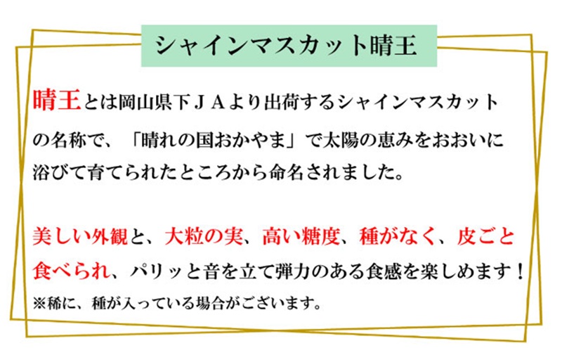 ぶどう 2026年 先行予約 シャイン マスカット 晴王 約2kg 3~6房 種無し ブドウ 葡萄 岡山県産 国産 フルーツ 果物 ギフト