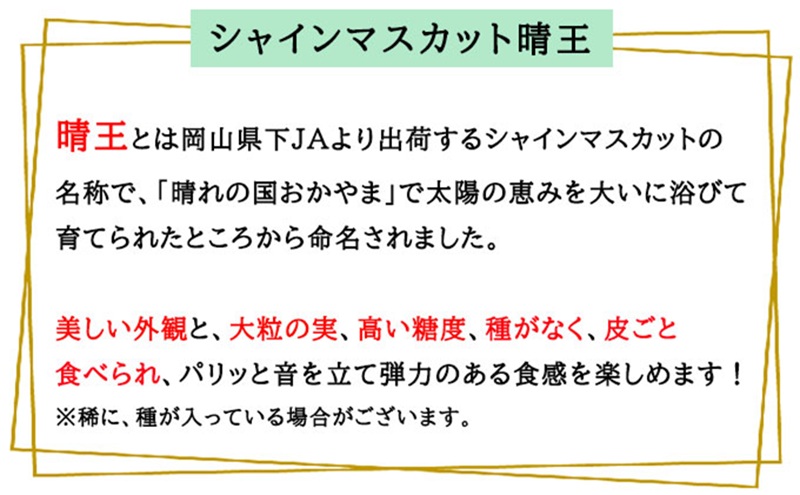 ぶどう 2026年 先行予約 ぶどう ご家庭用 シャインマスカット 晴王 約400g×1房 ブドウ 葡萄 岡山県産 国産 フルーツ 果物