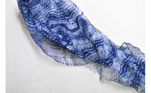 リネンストール藍染め 板締め絞り/ハーフサイズ(極細麻糸ラミー)(男女兼用)天然素材ストール専門店muto FAA4019