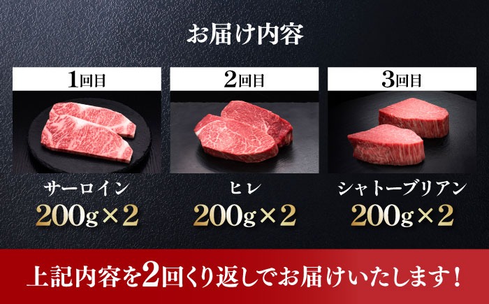 【全6回定期便】博多和牛 食べ比べ ステーキ 定期便 ( サーロイン / ヒレ / シャトーブリアン ) 《築上町》【久田精肉店】 肉 和牛 牛 精肉[ABCL140]