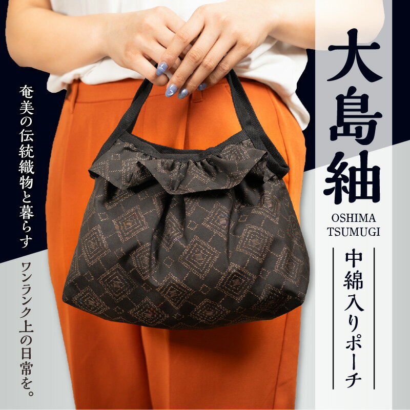 - 【ふるさと納税】本場奄美大島紬 中綿入り ポーチ 変わり格子柄 大島紬 フリル ふんわり 軽い ポーチ 長財布 500mlペットボトル 伝統素材 スタイリング ポイント 手づくり ハンドメイド 贈り物 おしゃれ 世界三大織物 鹿児島 和泊町 送料無料