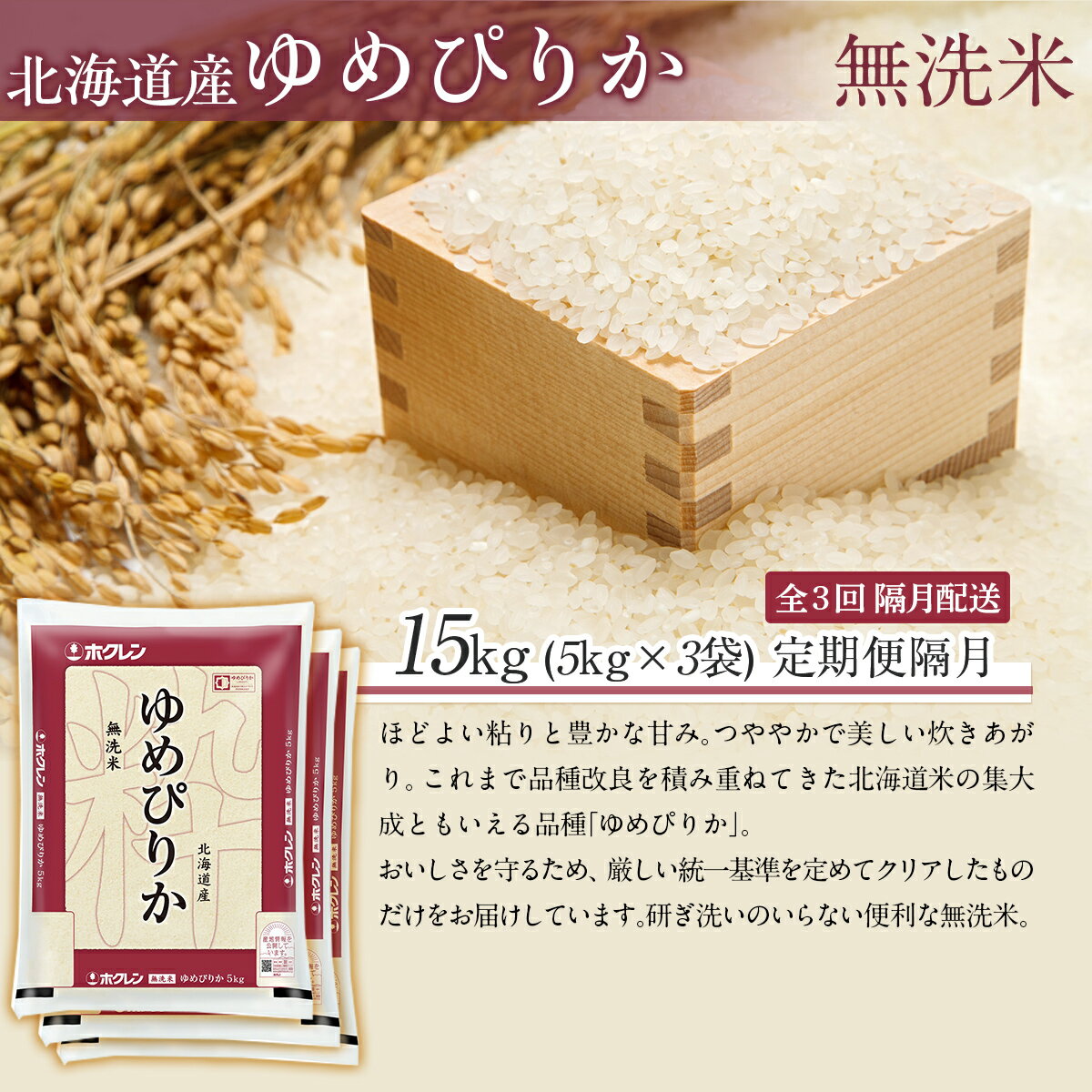 - 【ふるさと納税】【令和7年産】 【隔月3回配送】(無洗米15kg)ホクレンゆめぴりか(無洗米5kg×3袋) 【 ふるさと納税 人気 おすすめ ランキング 米 コメ こめ お米 ゆめぴりか ご飯 白米 精米 無洗米 国産 ごはん 白飯 定期便 北海道 むかわ町 送料無料 】 MKWAI050