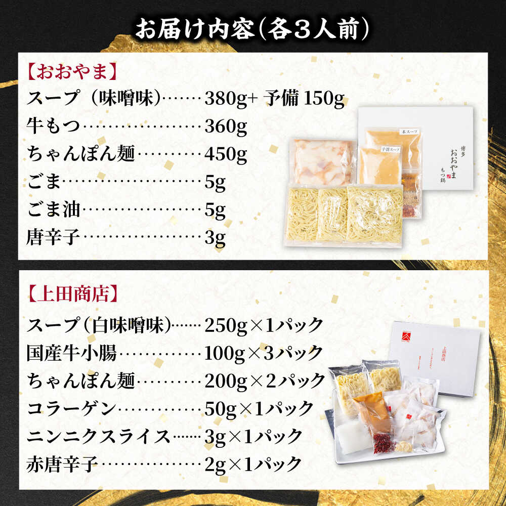 【ふるさと納税】博多もつ鍋 食べ比べ2種セット(味噌/各3人前)【おおやま・上田商店】 吉富町/株式会社吉浦コーポレーション[BGAD069]モツ鍋 もつなべ 鍋 福岡 冷凍 もつ 牛モツ 牛もつ 鍋セット 人気 食べ比べ 味噌 みそ 国産