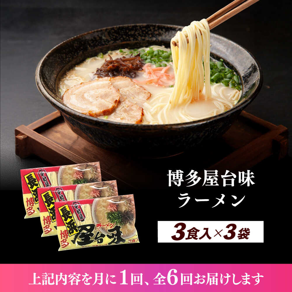 【ふるさと納税】【全6回定期便】博多屋台味ラーメン 3食入×3袋(9食)≪築上町≫【株式会社木村食品】 博多ラーメン 麺 拉麺 らーめん[ABEJ012]